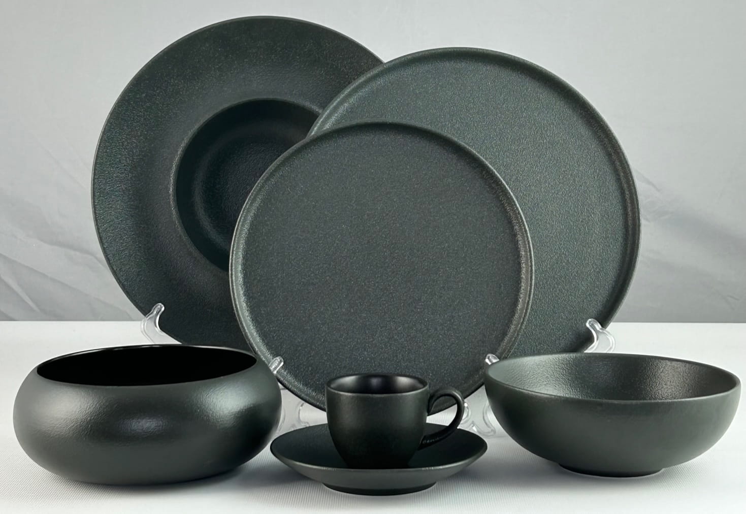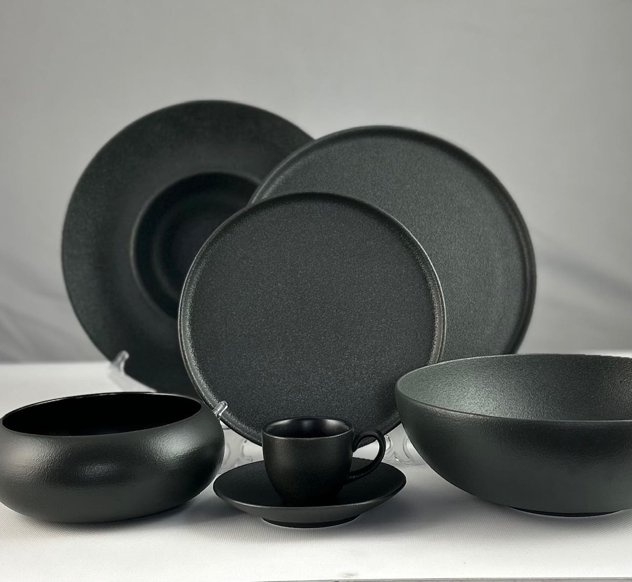 Kolekcja Terrea Black oferuje również kubki oraz filiżanki, idealne do serwowania doskonałej kawy i herbaty, a także różnorodne salaterki o różnych rozmiarach - od małych po duże. Dodatkowo, w serii dostępne są półmiski o owalnym lub okrągłym kształcie oraz ulubione talerze głębokie, idealne do podawania past czy sałatek.