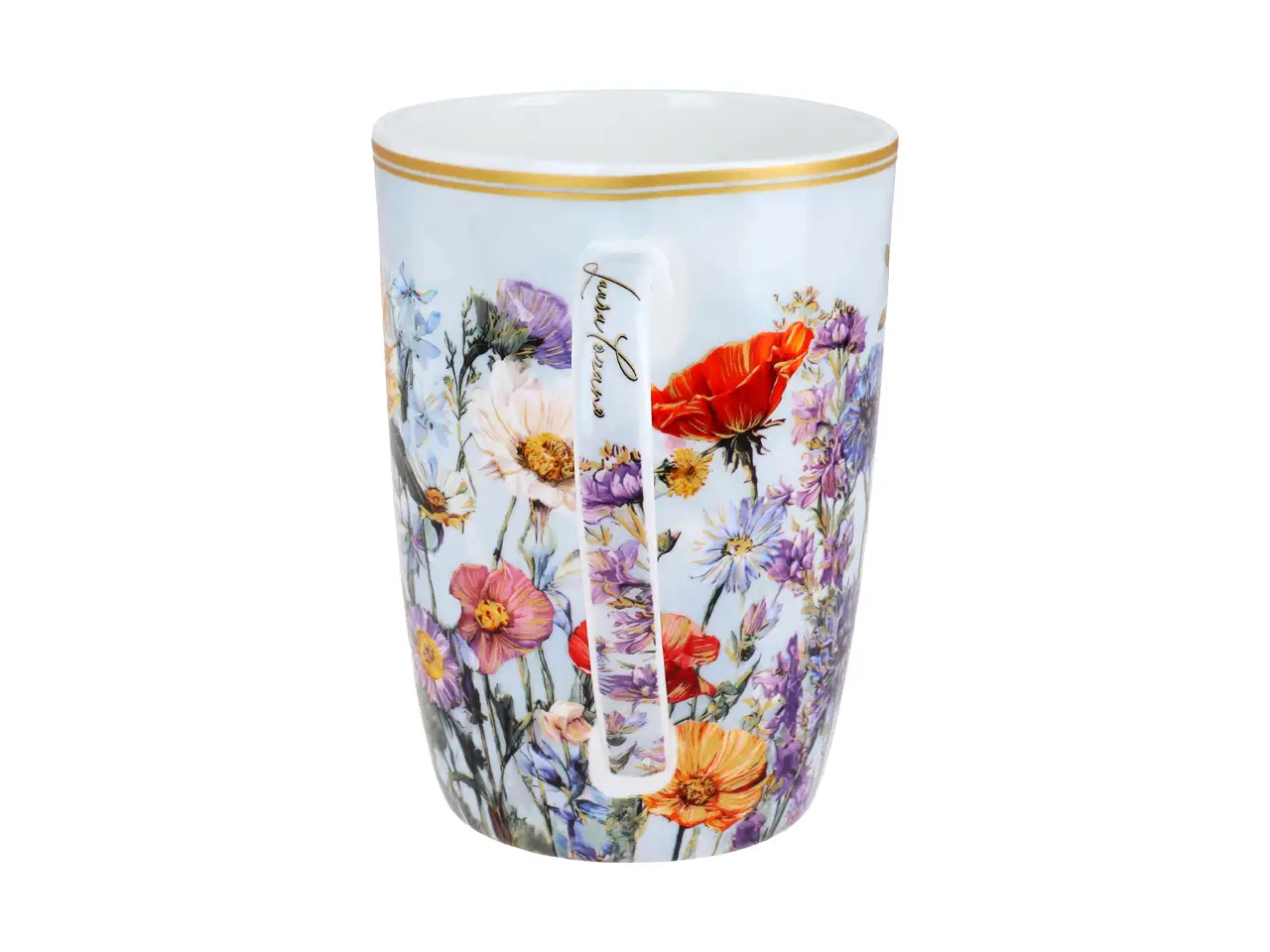 Dekoracja inspirowana naturą zachwyca bogactwem barw i detalem, przywołując atmosferę rozkwitającej łąki w letnim słońcu. Zestaw składa się z dużego kubka o pojemności 600 ml, metalowego sitka do zaparzania ulubionej herbaty liściastej oraz porcelanowej przykrywki, która pomaga zachować temperaturę i aromat napoju na dłużej.