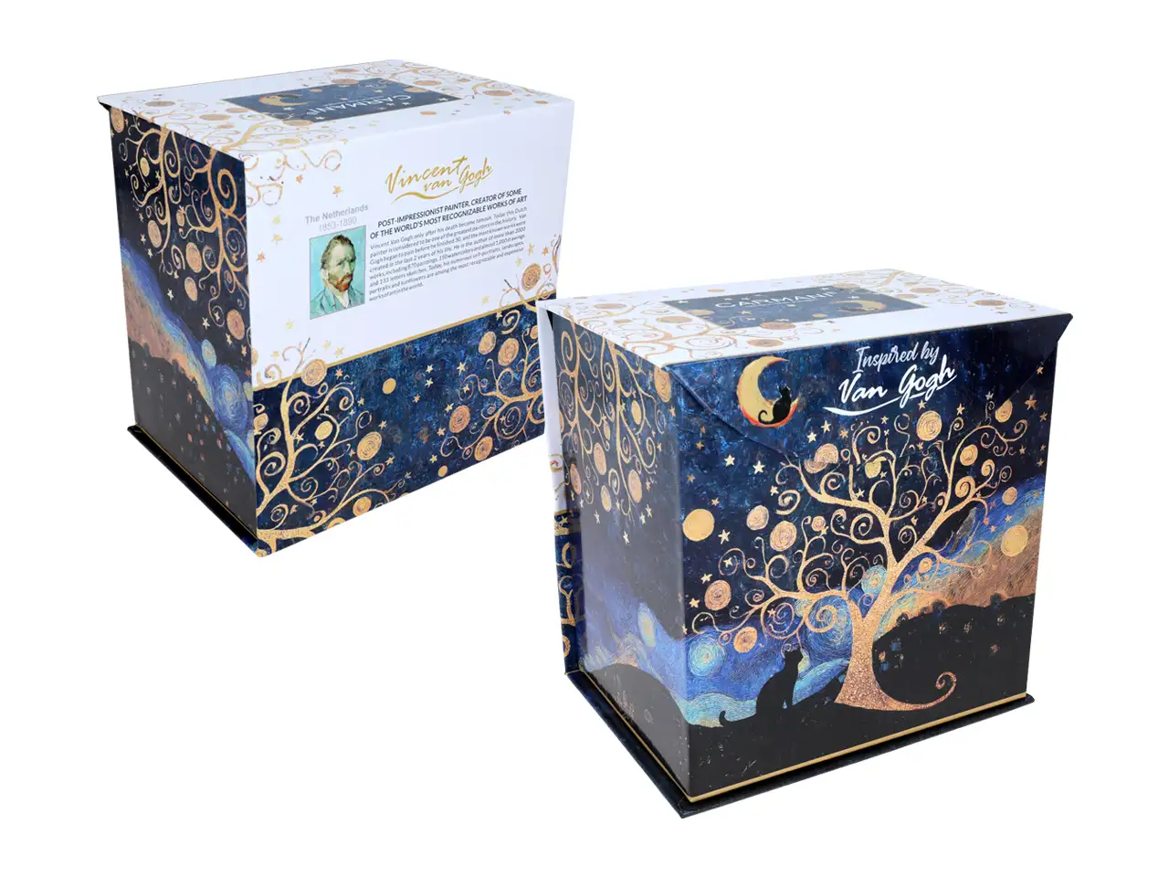 Kubek z sitkiem i przykrywką inspirowany malarstwem Vincenta van Gogha (CARMANI) to idealny wybór dla miłośników herbaty i sztuki. Duży, porcelanowy kubek o pojemności 600 ml zdobi wyjątkowa dekoracja oparta na słynnym malarstwie mistrza impresjonizmu, dzięki czemu każdy łyk napoju zyskuje artystyczny wymiar.