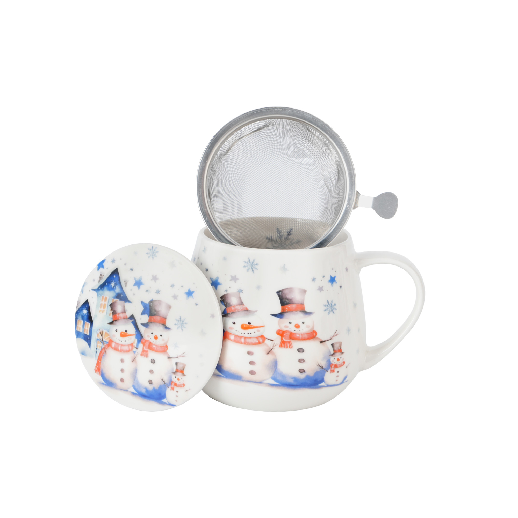 Kubek baryłka 430 ml z zaparzaczem i pokrywką SNOWMAN – kolekcja Świąteczna
