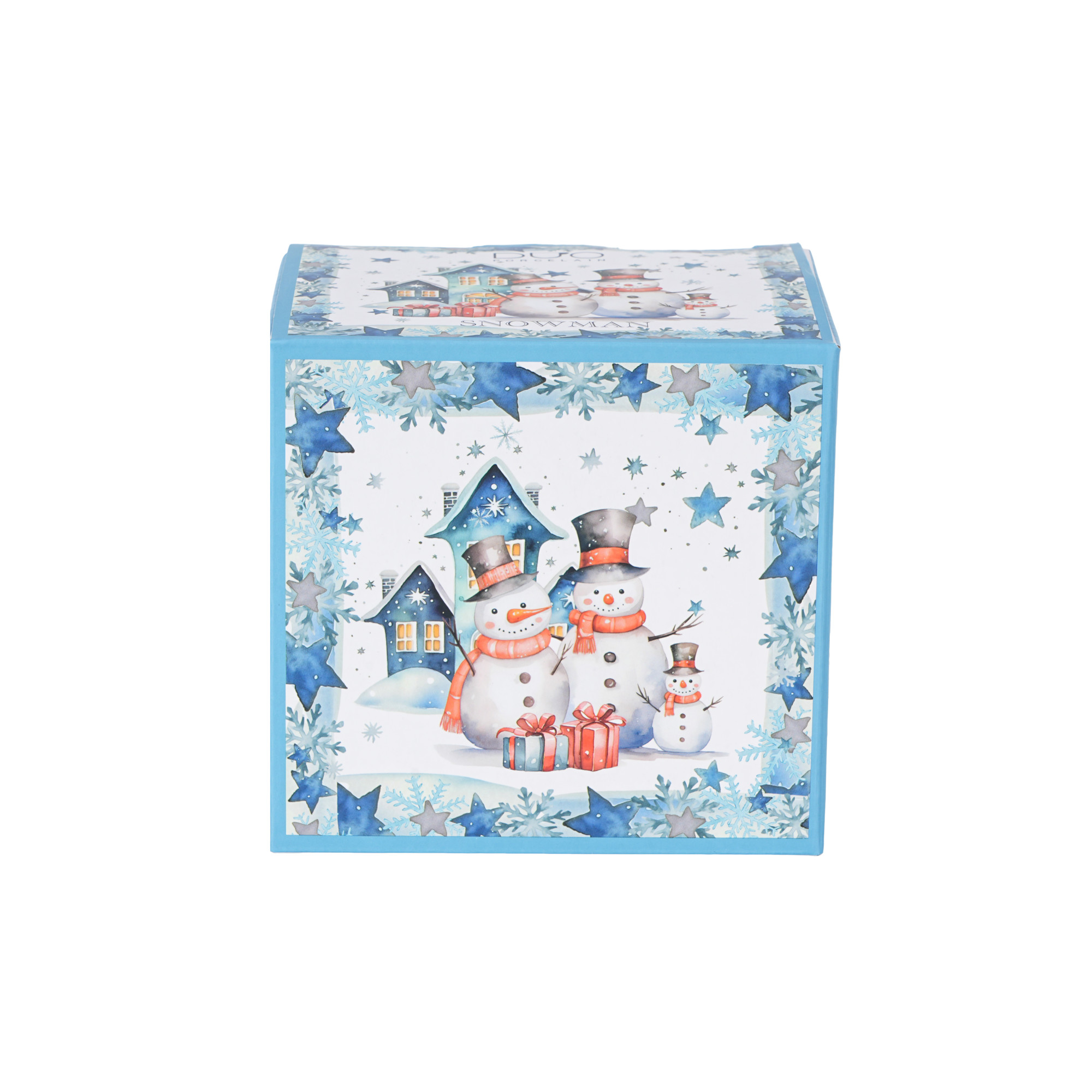 Linia zdobiona jest motywem wesołej rodziny bałwanków na tle malowanych domków w pastelowych odcieniach błękitu i niebieskiego. Zimowy krajobraz wraz ze świątecznymi detalami idealnie wprowadza bożonarodzeniowy nastrój i tworzy ciepłą, rodzinną atmosferę.