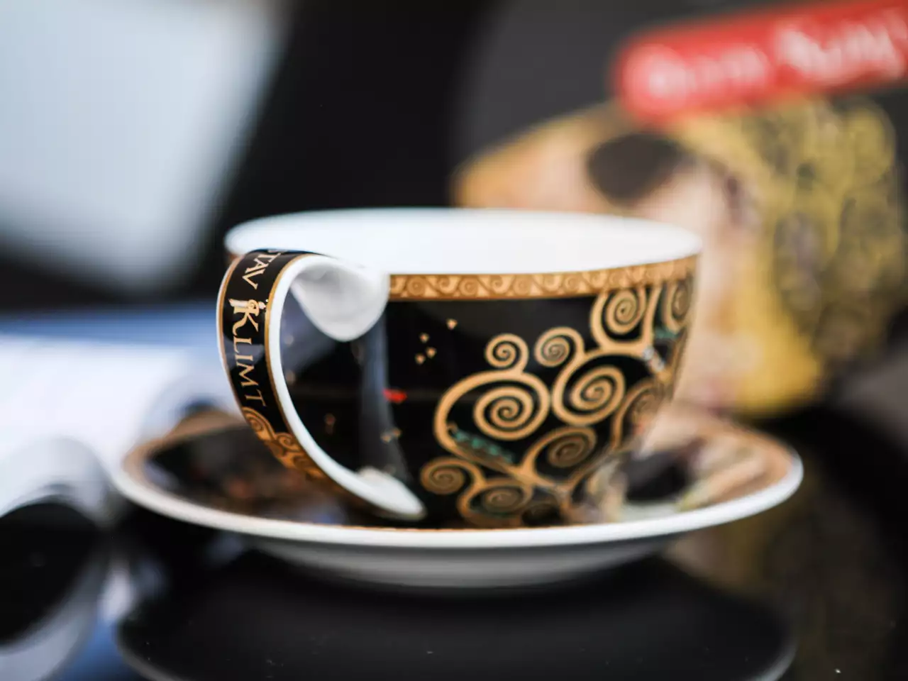 Duża filiżanka ze spodkiem umili każde spotkanie przy herbacie lub dużej kawie. Największe dzieła G. Klimta świetnie się prezentują i na tym kształcie filiżanki.
