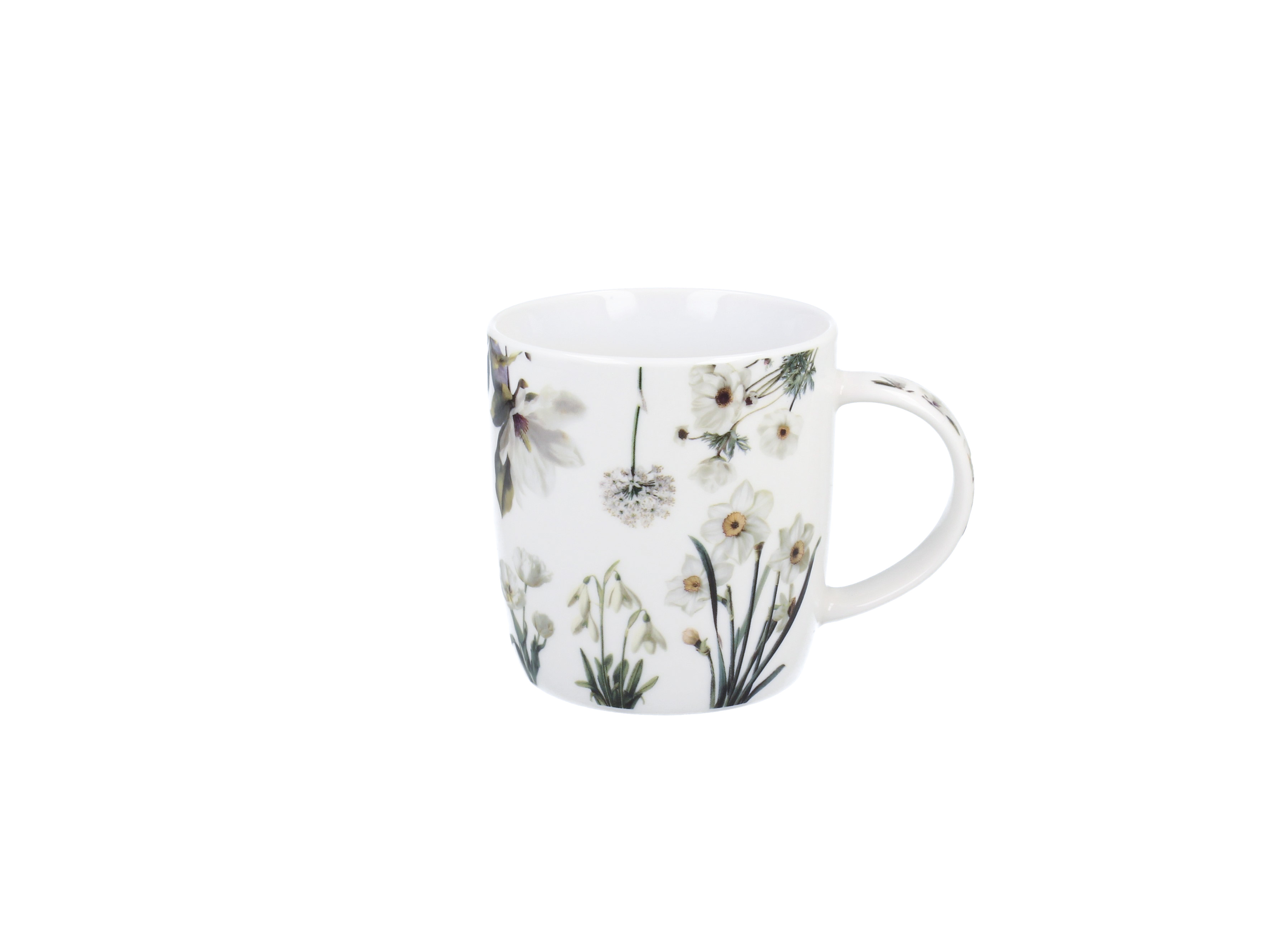 Kubek „Białe kwiaty” z serii „Wiosna w rozkwicie” to elegancki zestaw porcelanowy New Bone China o naturalnym kremowo-białym kolorze z delikatnym połyskiem, wyjątkowej wytrzymałości i trwałości, zachowując lekkość i finezję.