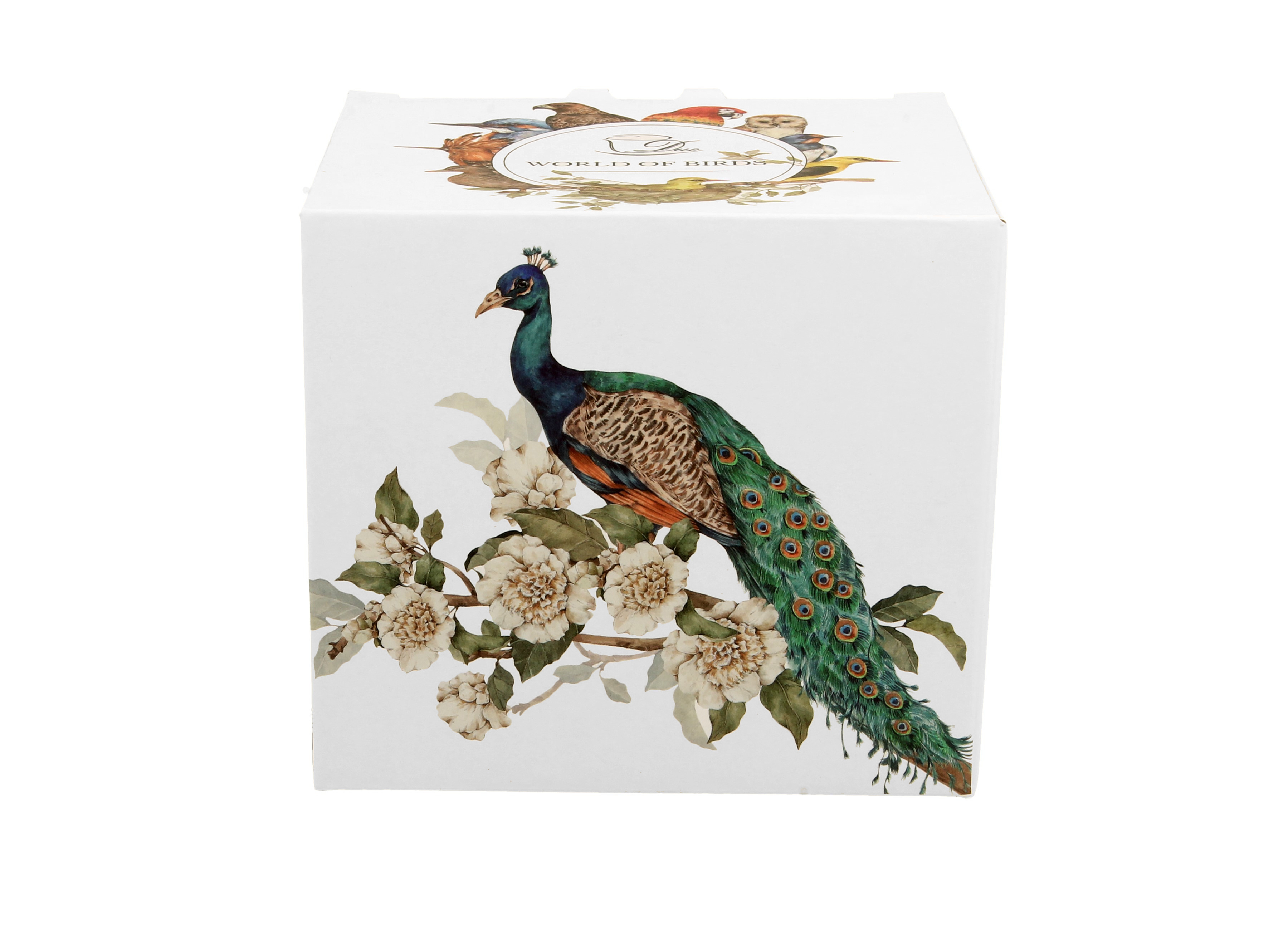 Kubek zapakowany jest w ozdobne pudełko z motywem pawia – doskonały prezent dla miłośników przyrody, którzy cenią sobie piękno ptasiego świata. ✅✔️ Ciesz się każdą chwilą relaksu z ulubionym napojem, otoczony magią naturalnego przepychu! ❇️❤️✨