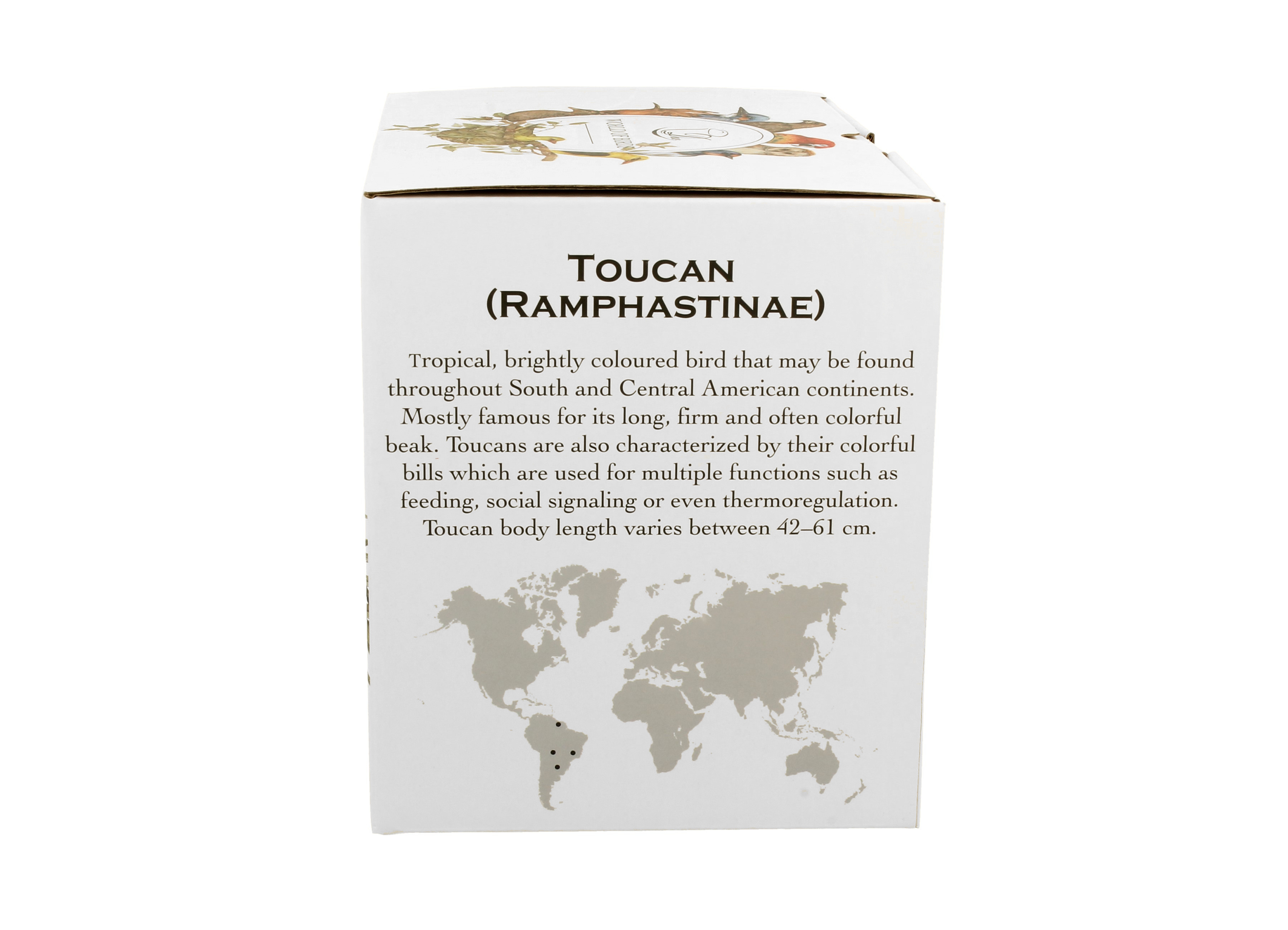 Kubek zapakowany jest w ozdobne pudełko z tym samym motywem tukana – doskonały prezent dla bliskiej osoby kochającej przyrodę i ceniącej piękno ptasiego świata. ✅✔️ Ciesz się każdą chwilą relaksu z ulubionym napojem, otoczony magią egzotycznej przyrody! ❇️❤️✨