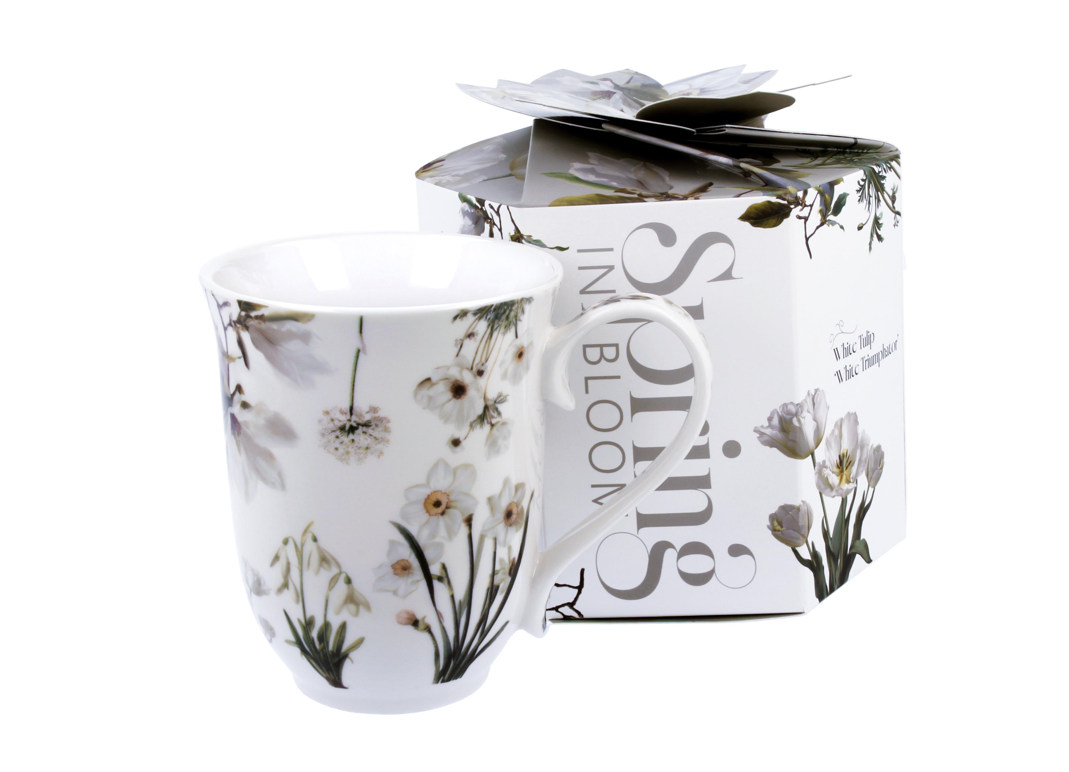 Kubek Vintage Białe Kwiaty 400 ml New Bone China w pudełku ozdobnym