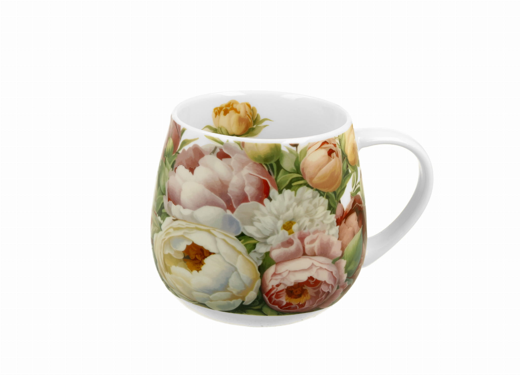 Ciesz się każdą chwilą przy kubku gorącego napoju w towarzystwie pięknych piwonii. Kubek wykonany z wysokiej jakości porcelany New Bone China to połączenie klasyki i nowoczesności. Delikatne pastelowe kolory wprowadzą do Twojego wnętrza harmonię i spokój.