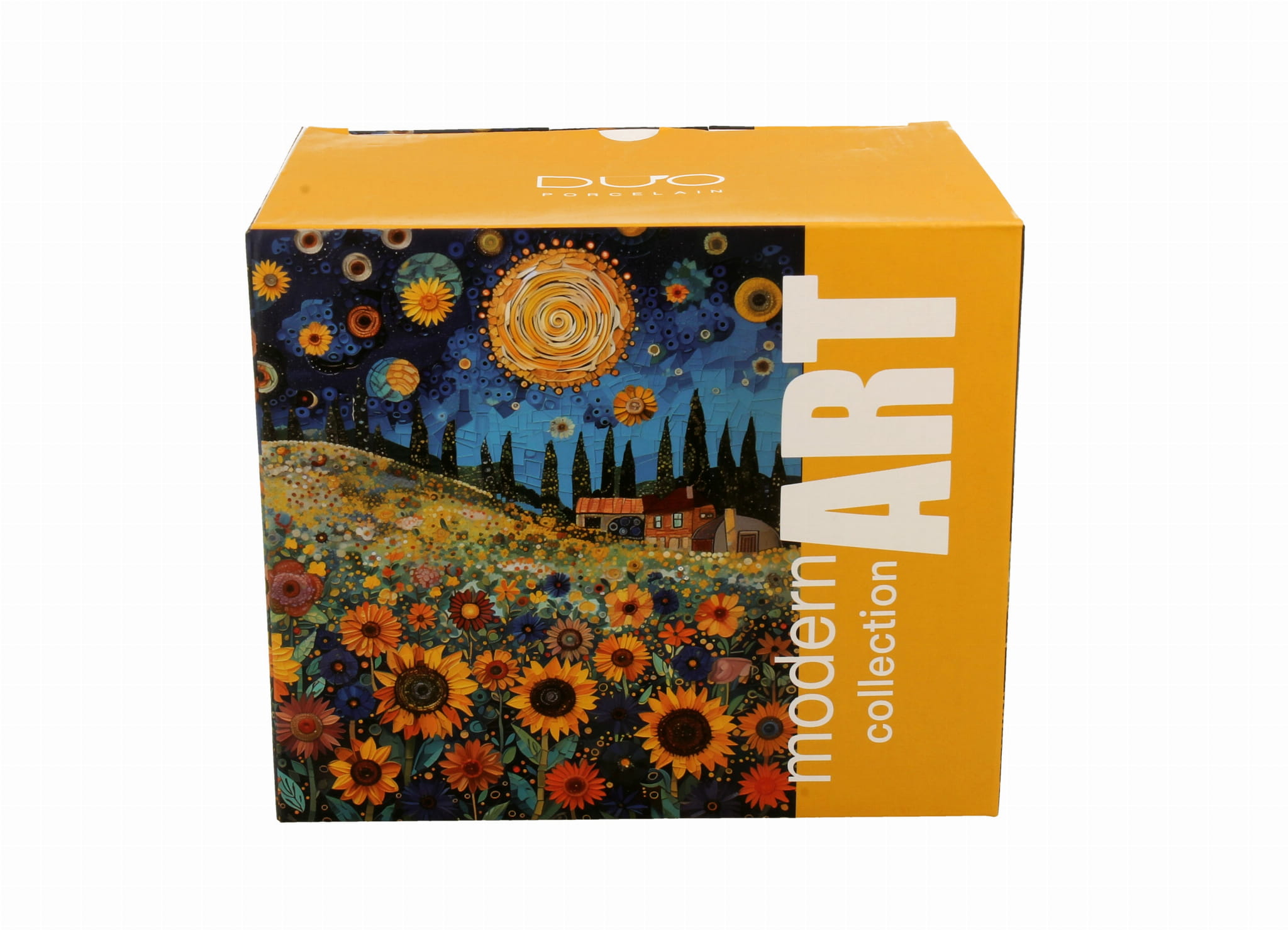 Zanurz się w pięknie natury dzięki naszemu kubkowi dużemu SUNFLOWER FIELD. Wizjonerski obraz pola słoneczników na tle gwiaździstego nieba wprowadzi do Twojego domu atmosferę spokoju i harmonii. To idealny wybór dla wszystkich, którzy cenią sobie oryginalny design i połączenie tradycji z nowoczesnością.