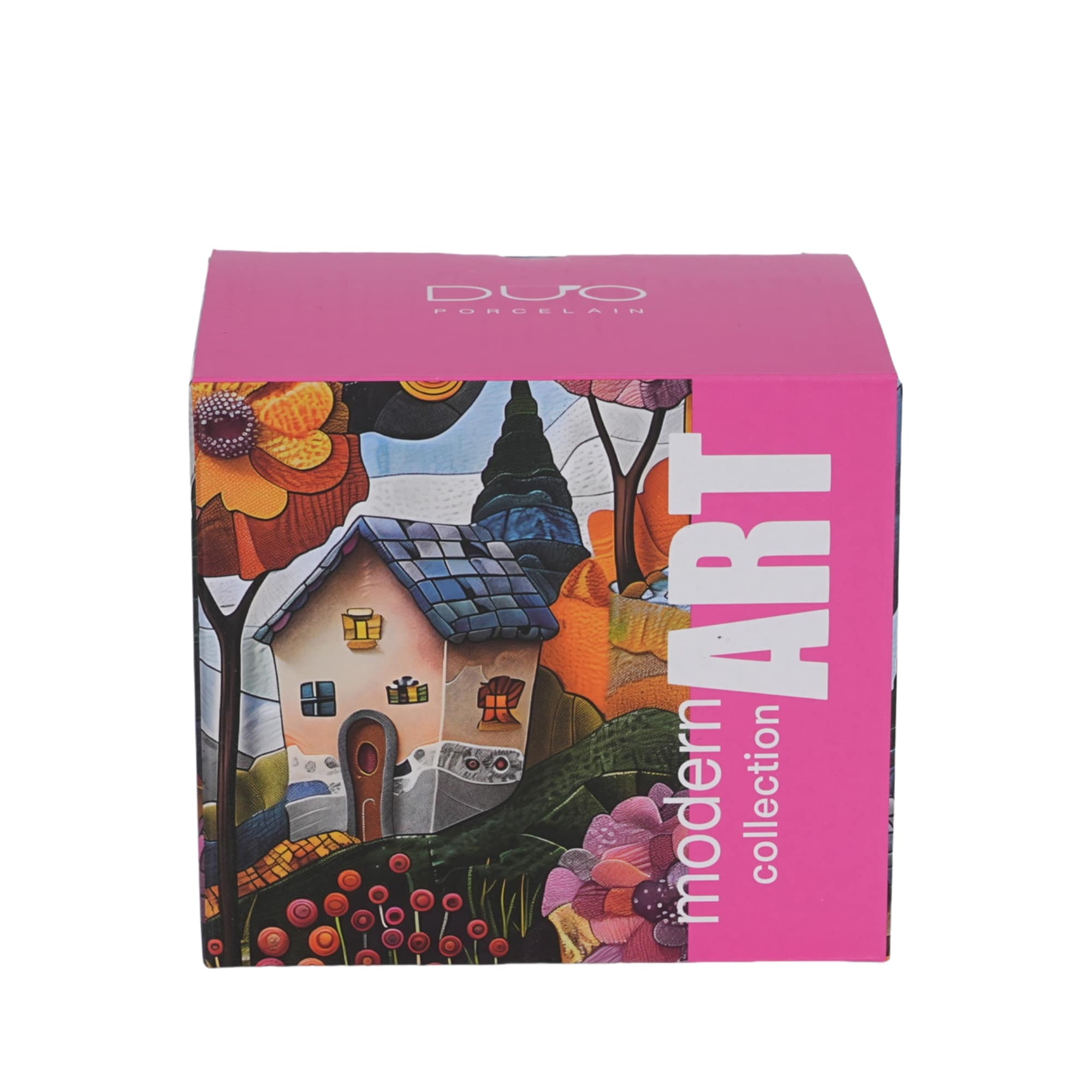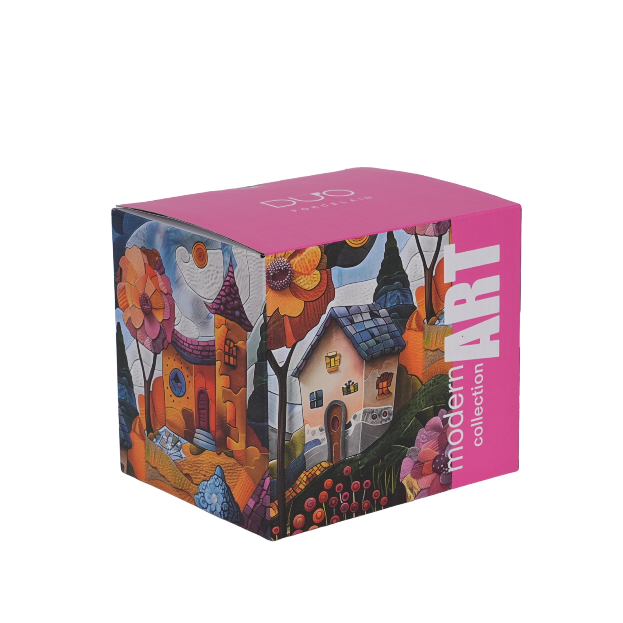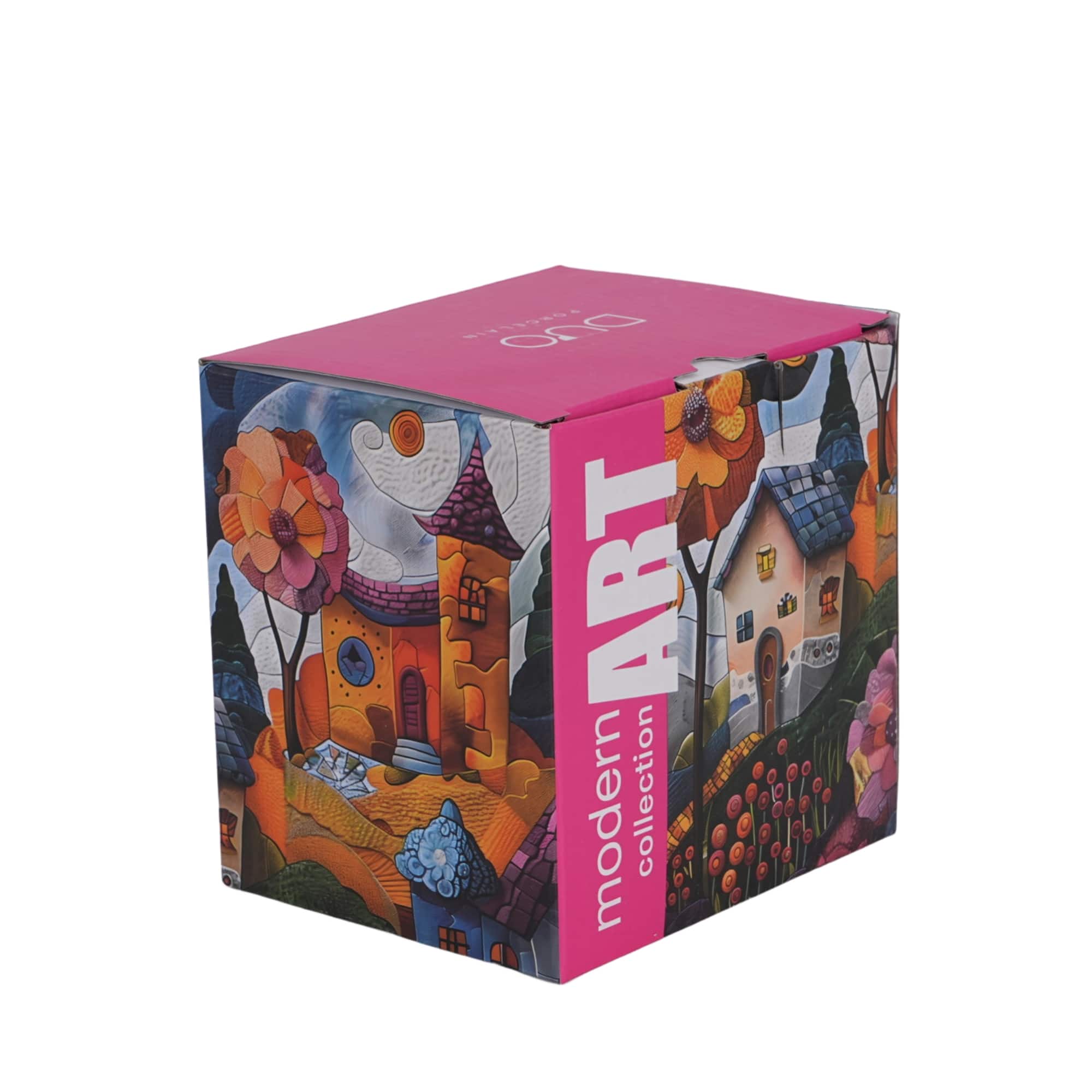 Kubek zdobiony jest futurystycznym obrazem malowniczej, bajkowej wioski na wzgórzu, otoczonej zaczarowanymi drzewami i kolorowymi kwiatami. Intensywne barwy i nowoczesny design łączą świat fantazji z magią, tworząc harmonijną i wyjątkową kompozycję, która pobudzi wyobraźnię. ❇️ To wzór, który wprowadzi do Twojego domu atmosferę inspiracji i piękna! ❤️✨
