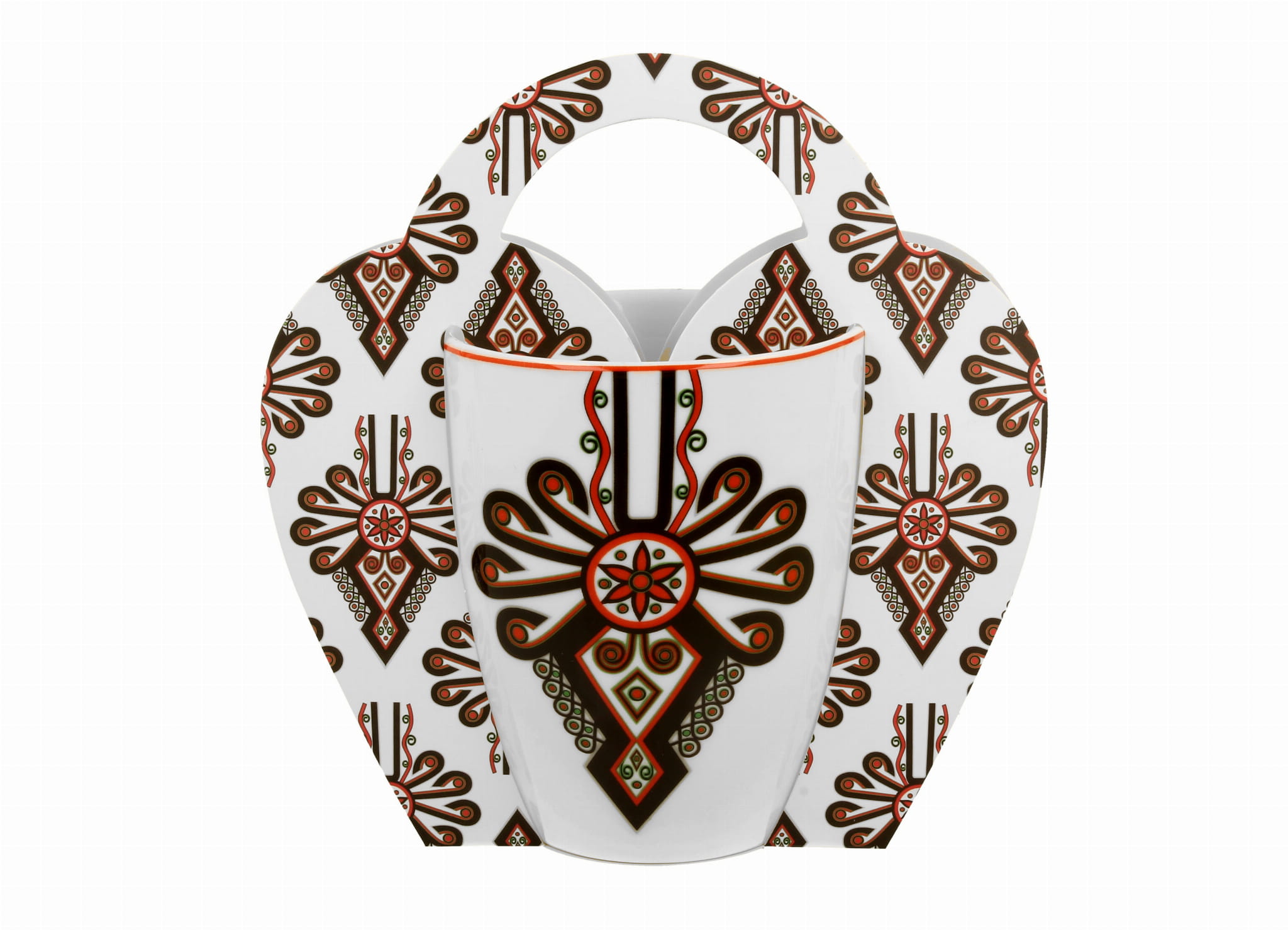 Zdobiony podhalańskim motywem parzenicy w wyrazistych czarno-czerwonych barwach, przyciąga wzrok i nadaje charakteru. ❇️ Ten regionalny wzór sprawia, że każda herbata czy kawa smakuje jak w góralskiej chacie! ✨
