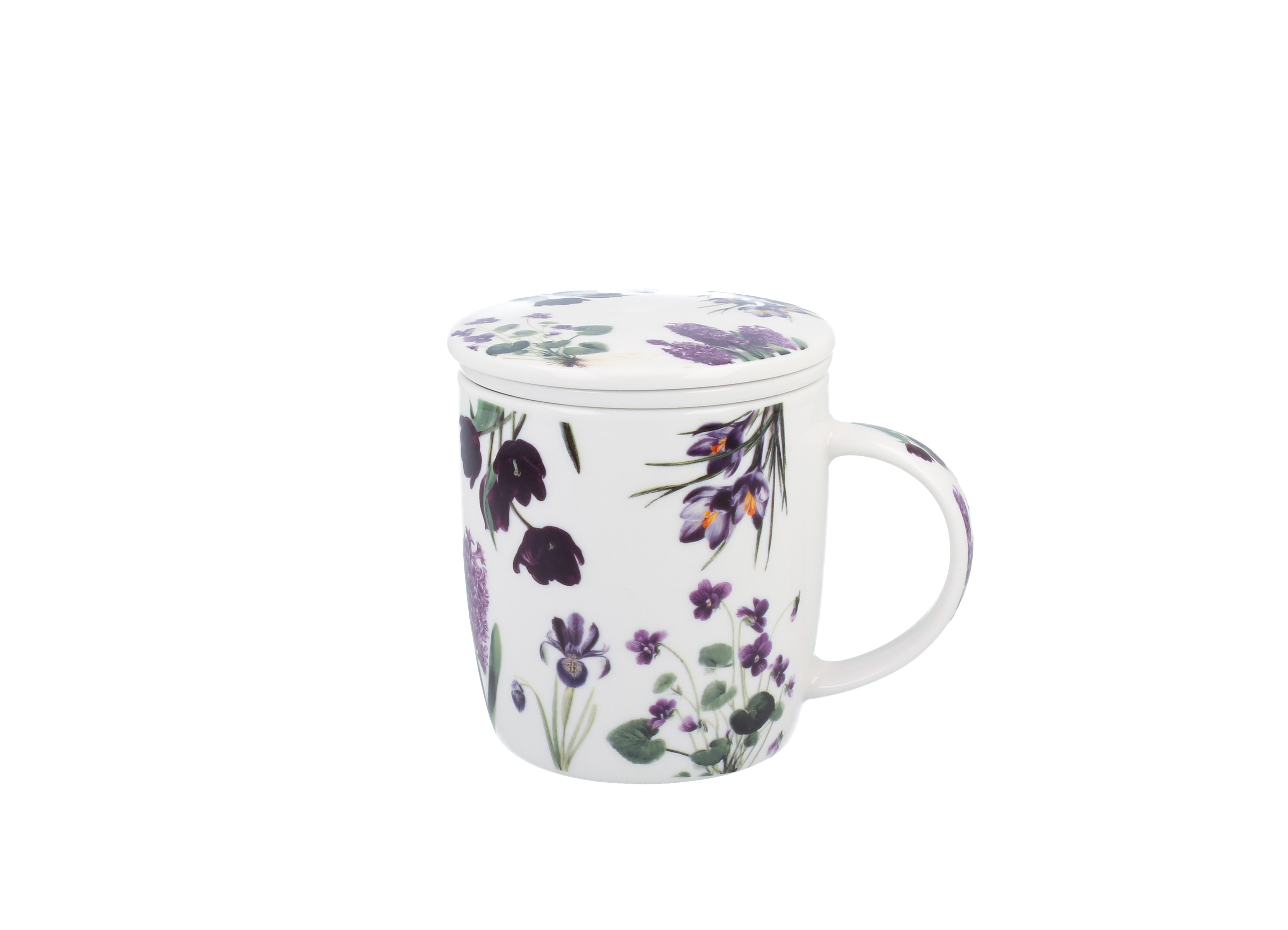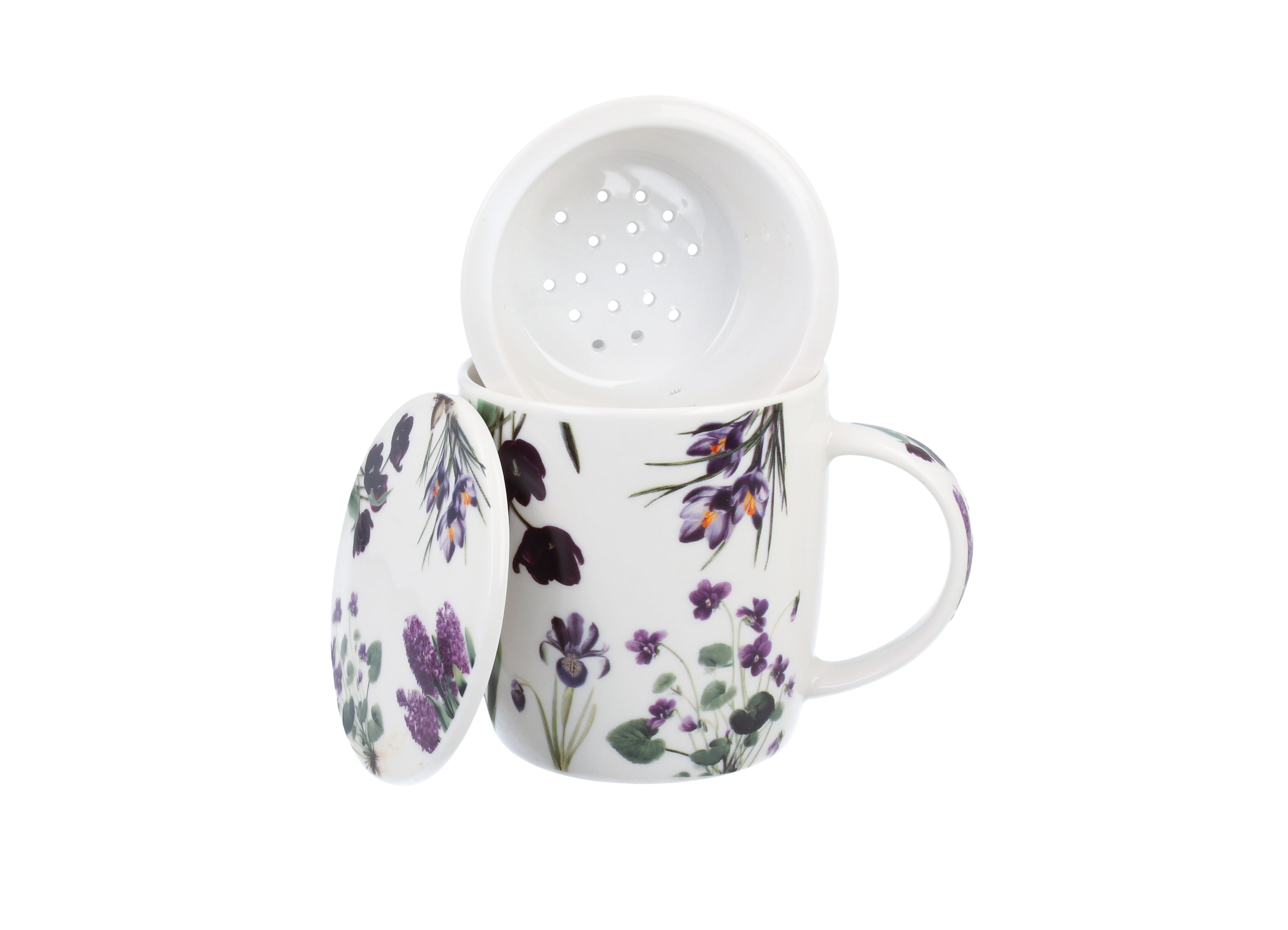 Kubek z zaparzaczem New Bone China Fioletowe Kwiaty 400 ml, pudełko
