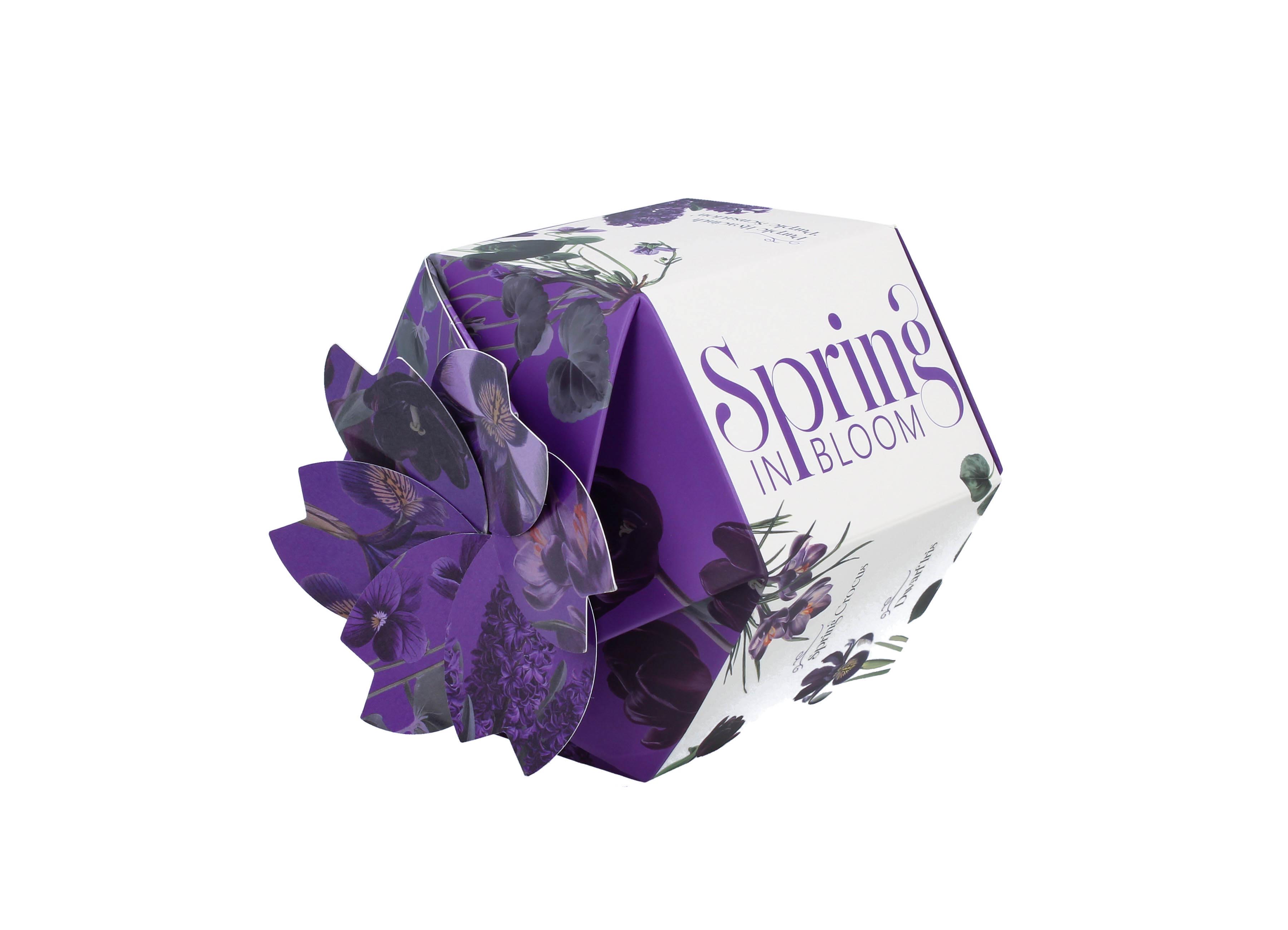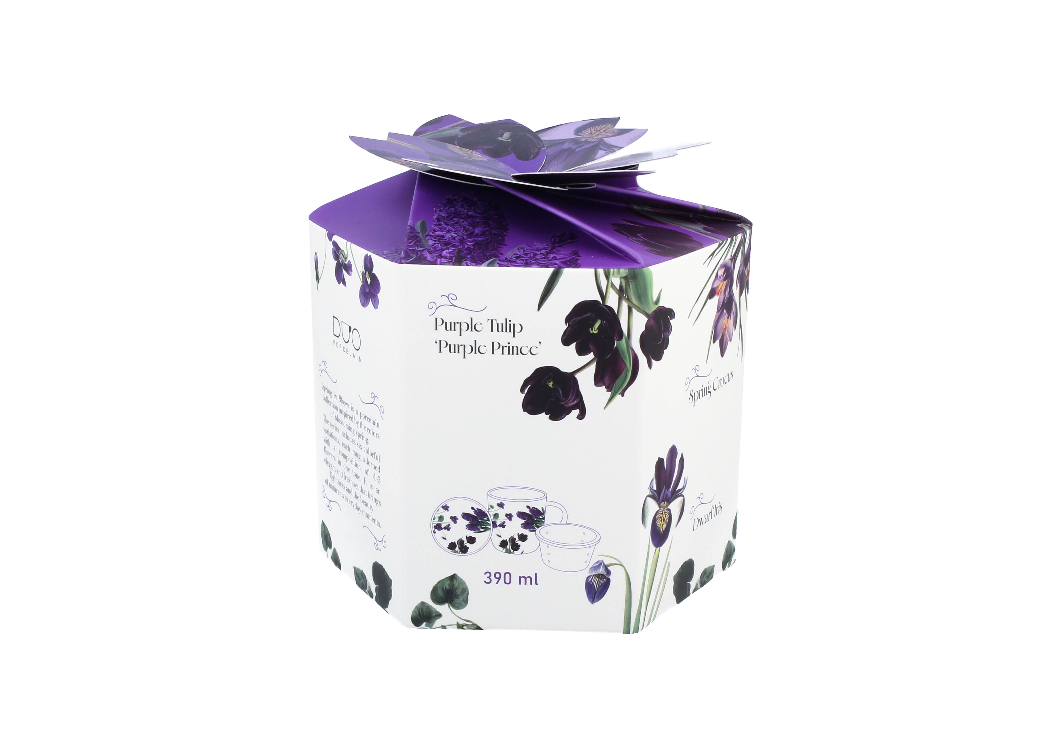 Kubek zapakowany w wyjątkowe, dekoracyjne pudełko, którego otwieranie przypomina rozkwitający kwiat – płatki rozchylają się, odsłaniając zawartość w efektowny sposób, czyniąc go idealnym prezentem.