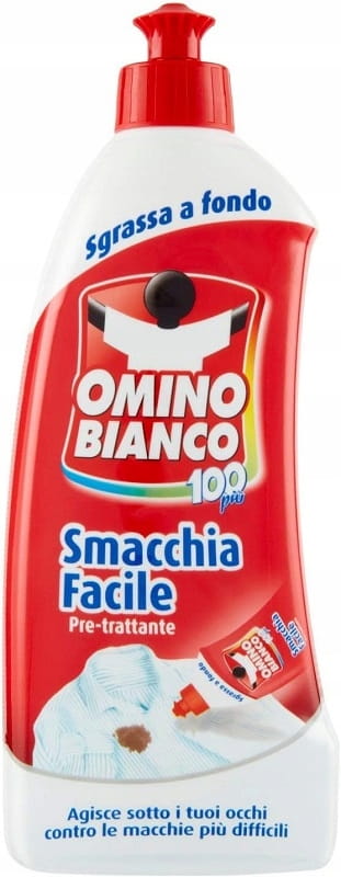 Omino Bianco Smacchia Facile to niezawodny preparat do prania wstępnego, który działa szybko i delikatnie na tkaniny.