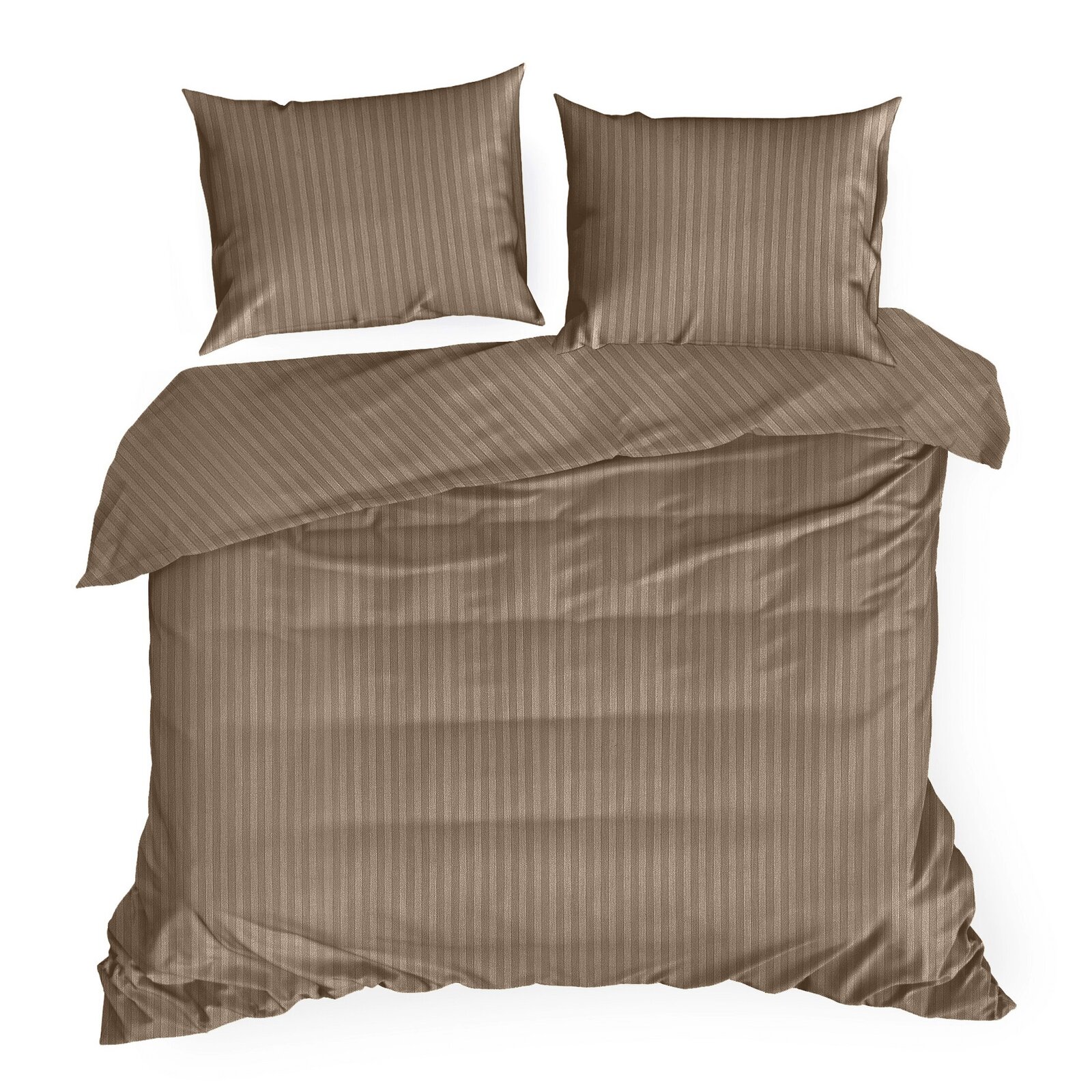 Pościel satynowa w prążki komplet 140X200 VERA beżowo brązowy Eurofirany