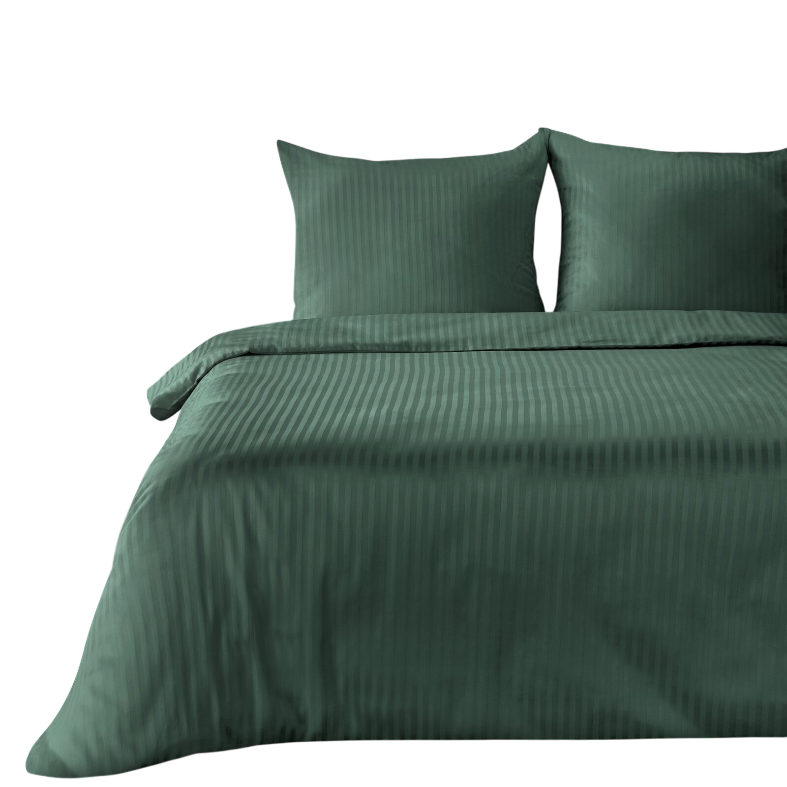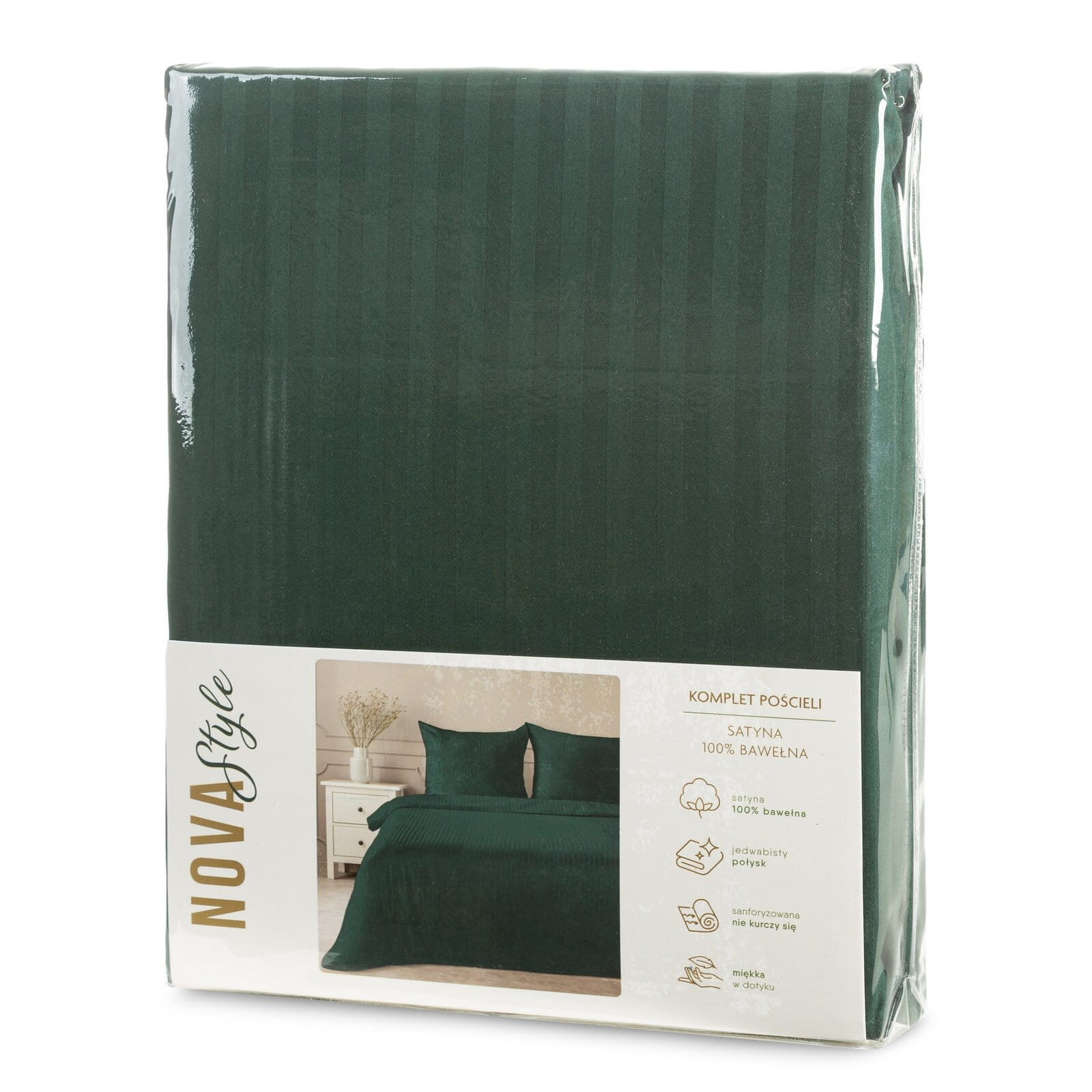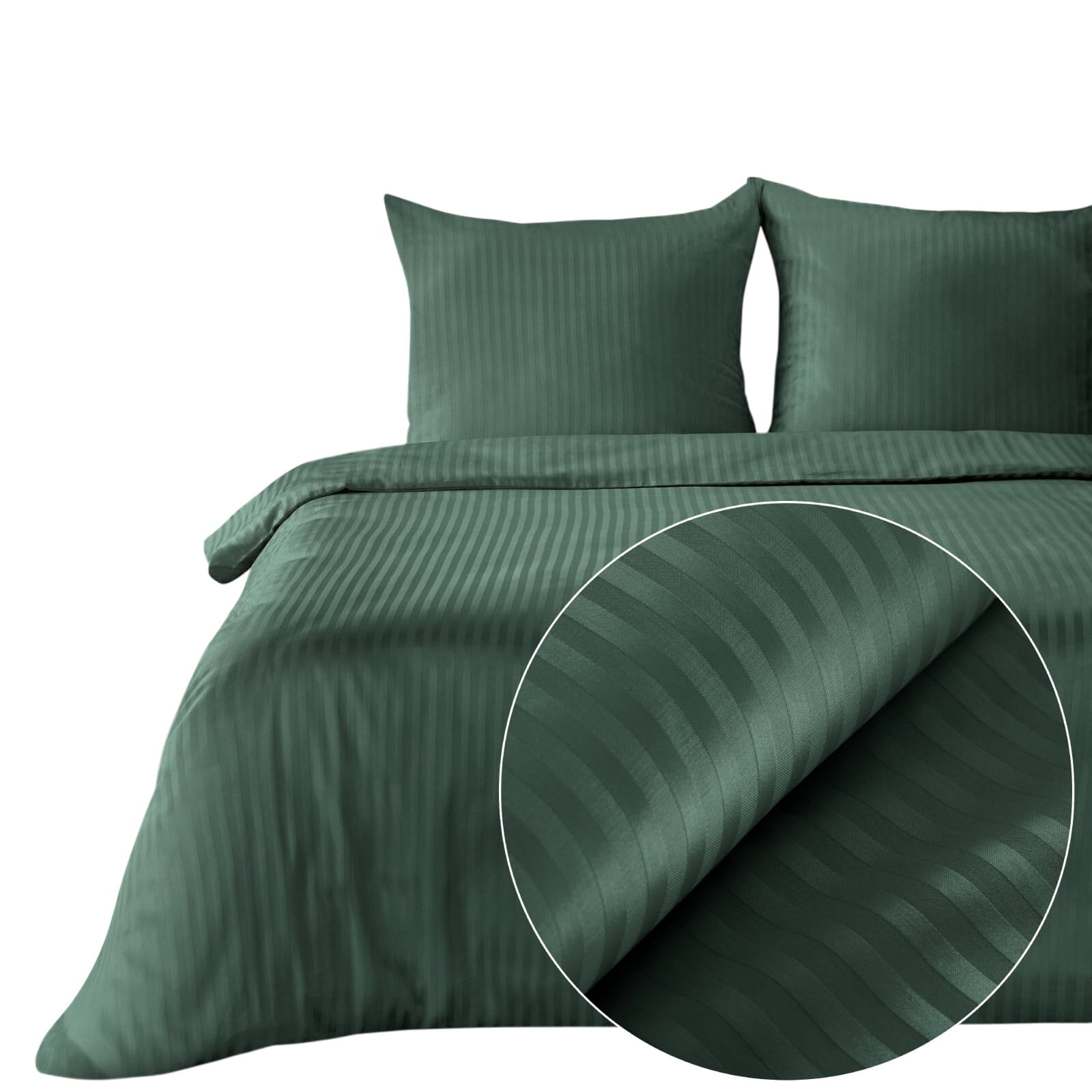 Pościel satynowa w prążki komplet 160X200 VERA Ciemny zielony Eurofirany