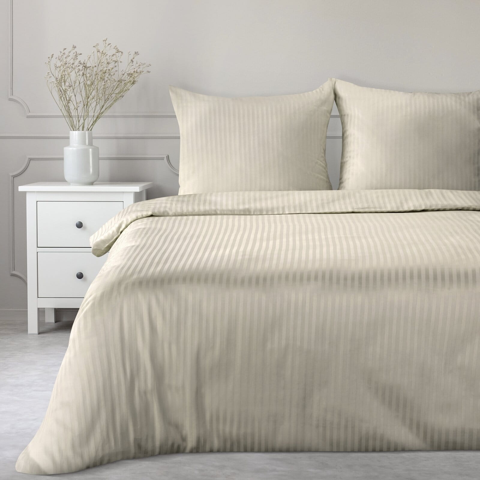 Luksusowy wygląd – satynowy połysk i finezyjne prążki sprawiają, że Twoja sypialnia zyska nowy wymiar elegancji.