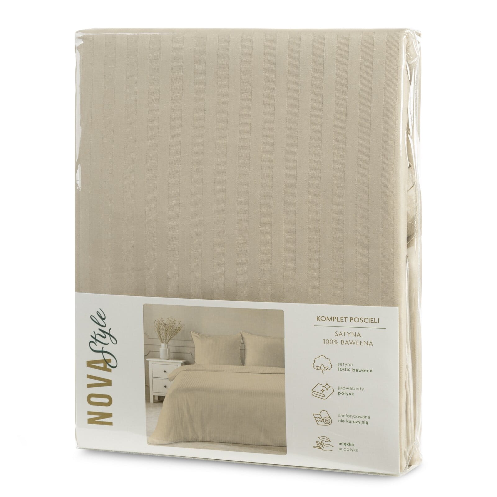 Pościel satynowa w prążki komplet 160X200 VERA beż Eurofirany