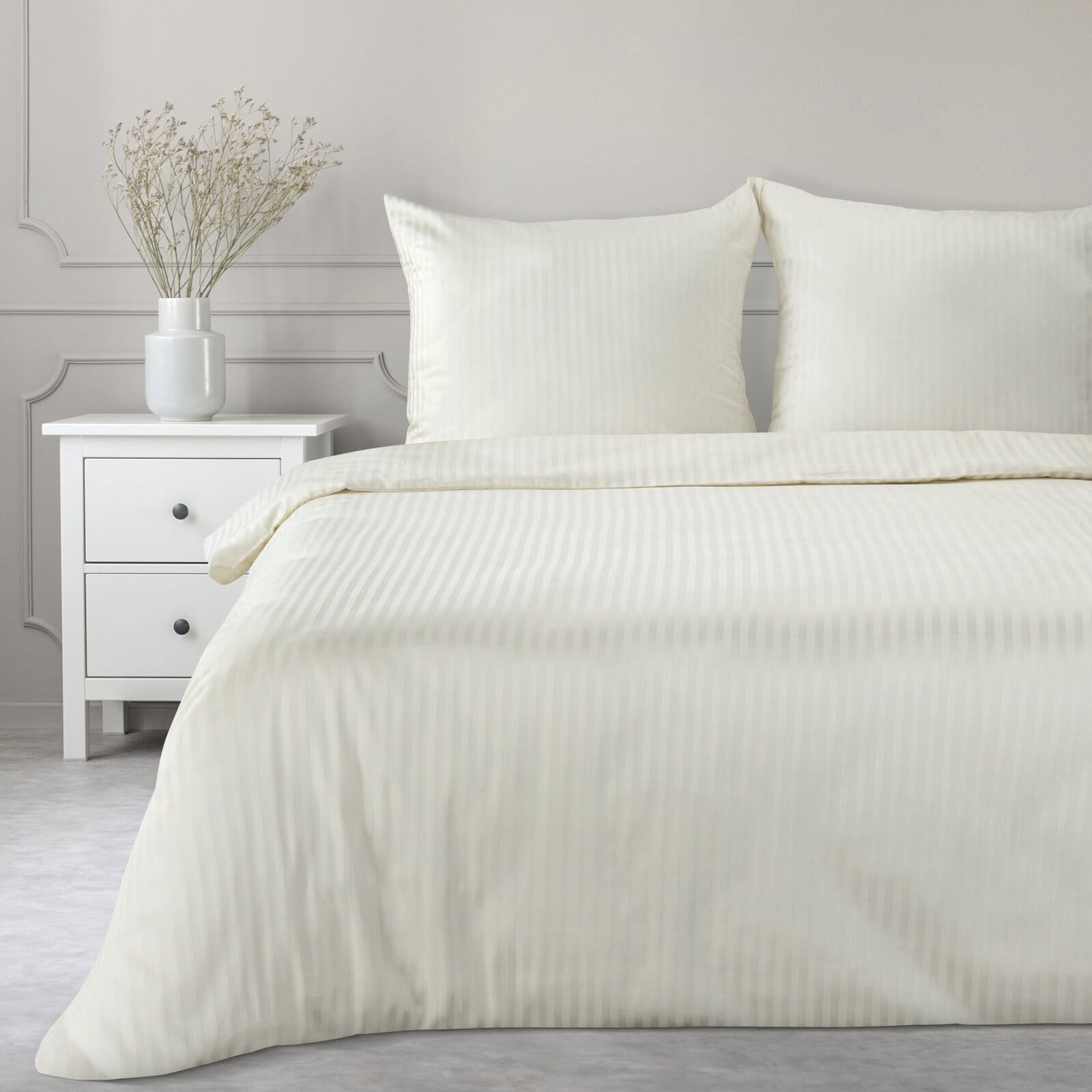 Luksusowy wygląd – satynowy połysk i finezyjne prążki sprawiają, że Twoja sypialnia zyska nowy wymiar elegancji.