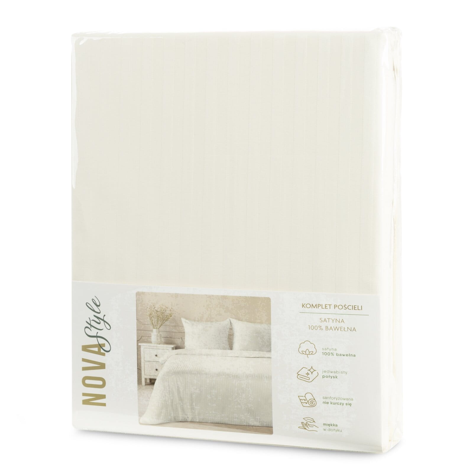Pościel satynowa w prążki komplet 160X200 VERA kremowy Eurofirany