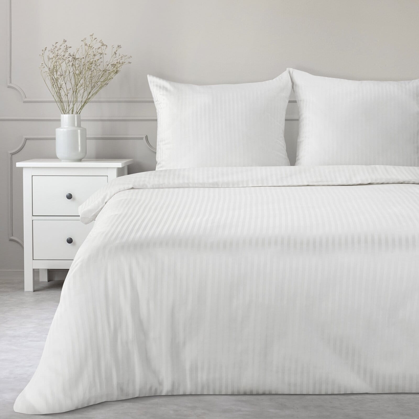 Luksusowy wygląd – satynowy połysk i finezyjne prążki sprawiają, że Twoja sypialnia zyska nowy wymiar elegancji.