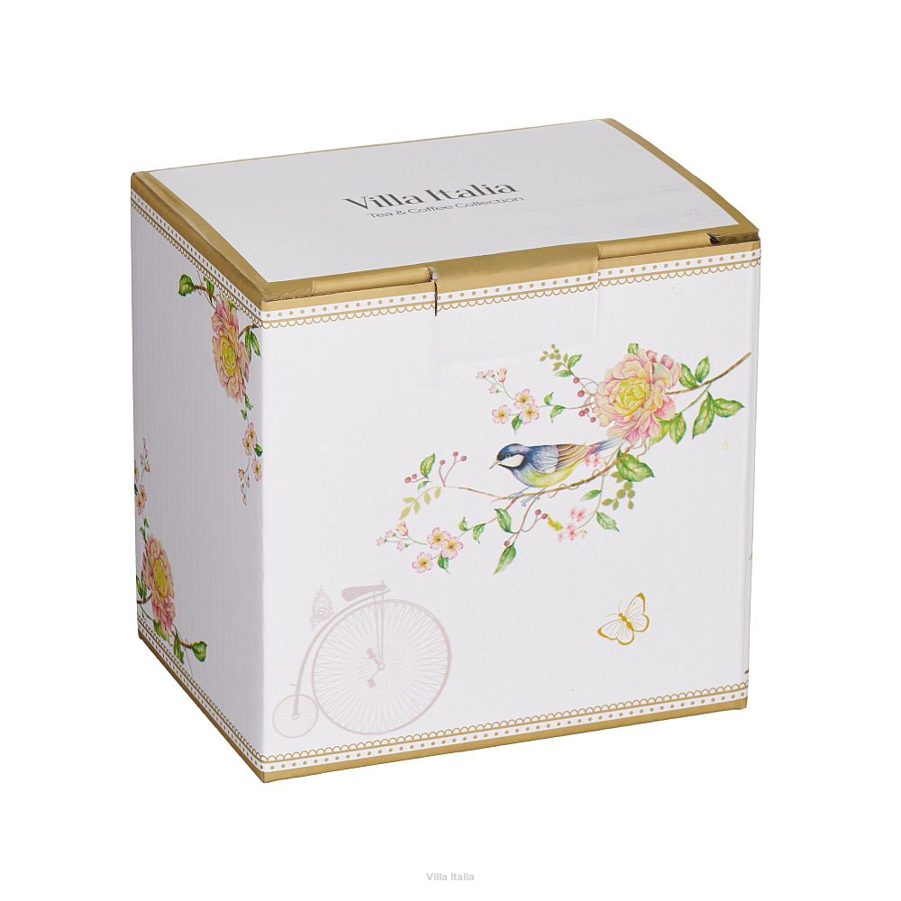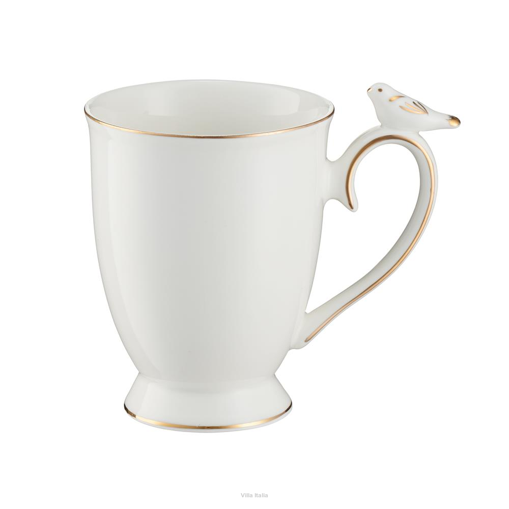 Elegancki kubek z kolekcji Tea & Coffee Collection od Villa Italia wykonany jest z porcelany typu NBC w ciepłym odcieniu bieli. Jego wyjątkowy charakter podkreśla figurka ptaszka zdobiąca uchwyt oraz ręcznie malowane złote detale. Klasyczne, ponadczasowe wzornictwo sprawia, że kubek prezentuje się niezwykle stylowo i będzie ozdobą każdego stołu.