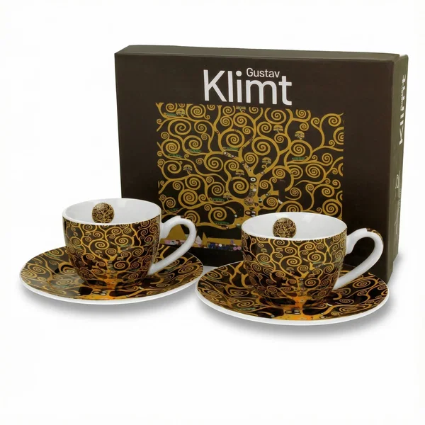 Filiżanki do espresso porcelanowe ze spodkami „DUO ART GALLERY TREE OF LIFE BY GUSTAV KLIMT” to elegancki zestaw 2 filiżanek marki Duo z serii inspirowanej dziełem Gustava Klimta.