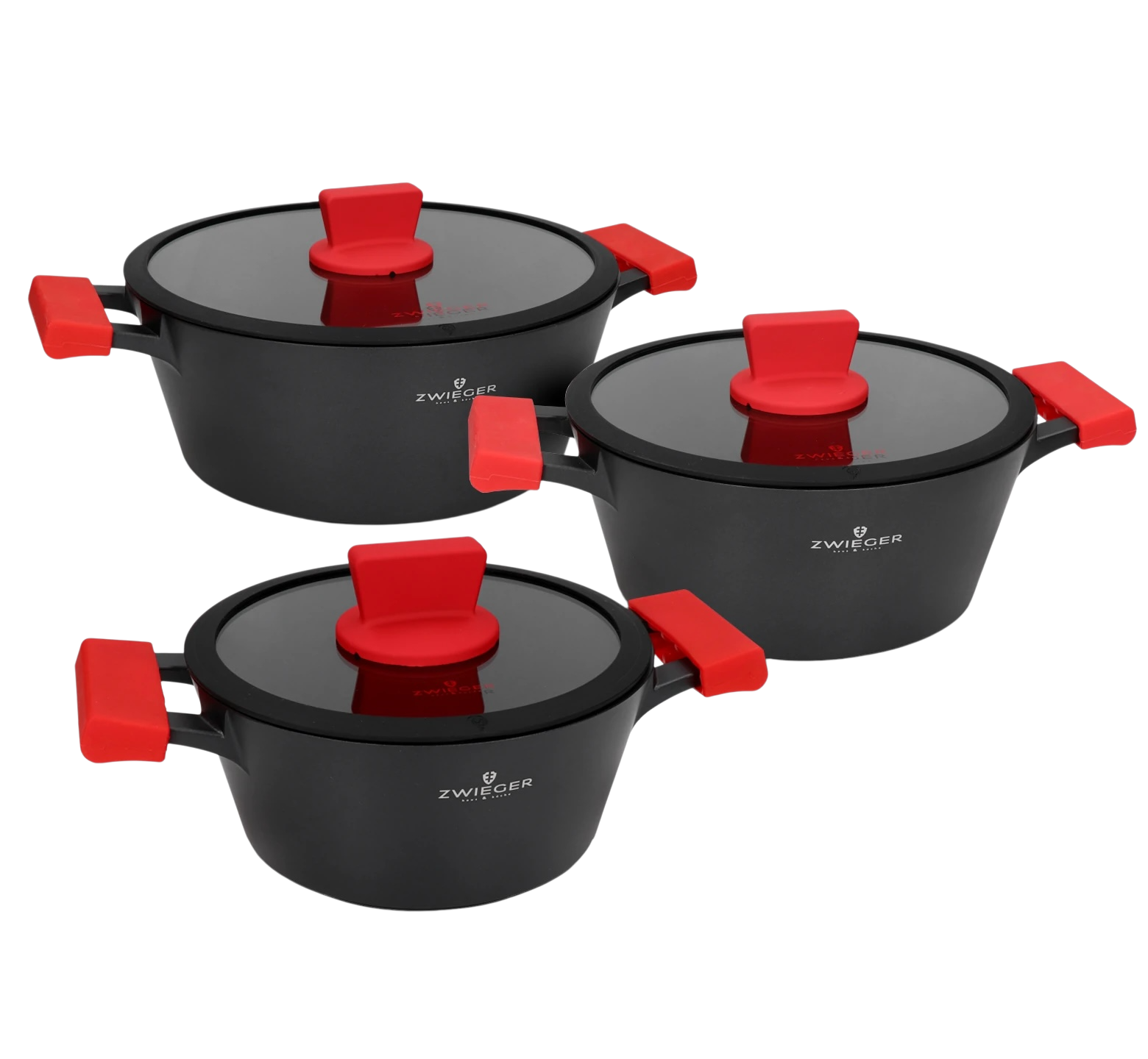 Garnki renomowanej marki Zwieger z odlewanego aluminum z pewnością przydadzą się do przygotowania ulubionych potraw. Odlewane aluminium to jeden z najtrwalszych materiałów odpornych na odkształcenia oraz zmiany temperatury, nadającym się przy tym do wielokrotnego użytku. Środek garnków pokrywa specjalna, trzywarstwowa, nieprzywierająca powłoka Greblon c3+ non-stick firmy WEILBURGER, utwardzoną ceramicznie. Z zewnątrz powłoka pokryta została czarnym, silikonowym lakierem żaroodpornym.